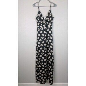 NWT Dee Elly Womens Floral Black Maxi Calf Tiered Dress Size Small Cut Out 138