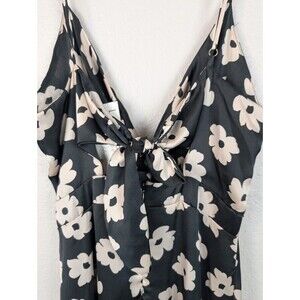 This is a black tiered maxi dress by Dee Elly for women in size small. The dress features a floral pattern in chiffon fabric with a sleeveless design and cut-out accents. It is suitable for occasions like weddings, parties, or casual events. The style is a midi length with a layered look, perfect for an angelic and feminine aesthetic with a theme of flowers.