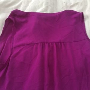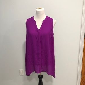 Deep magenta color tanktop. One button on top. Ribbed in back. Low-high style top (shorter in front, longer in back) Brand new with tags. Comes with an extra button. Size: 0x. Comment any questions below.