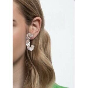 NWT Deepa Gurnani Acacia Hoop Earrings Smooth Discs Beads Crystals Mother Pearl