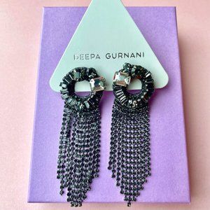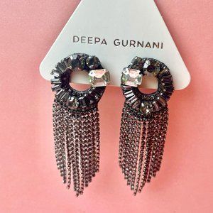 NWT Deepa Gurnani Crystal Rhinestone Chandelier Earrings Silver Gunmetal Grey