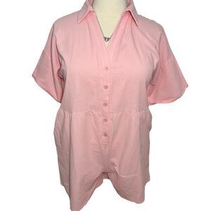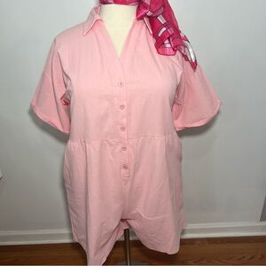 NWT Deepself Boutique Pink Button Front Linen Romper/Shortie -- 2XL