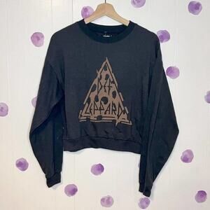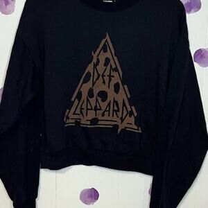 Def Leppard Black and Brown Cropped Long Sleeve Pullover Size XS NWT Comes from a smoke free home