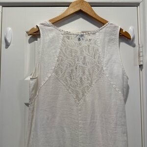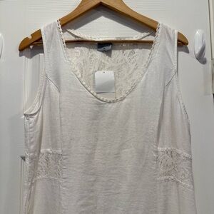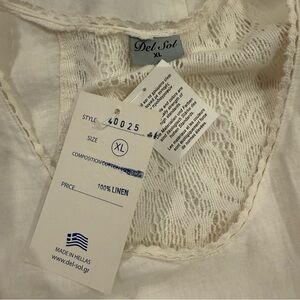 NWT Del Sol Linen Maxi Dress XL White Lace Crochet Coastal Beach Lagenlook