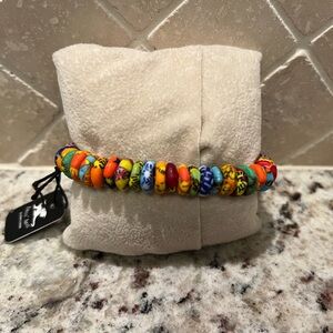 NWT Dell Arte by Jean Claude Multicolored Krobo Beaded Stretch Bracelet