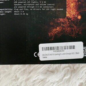 Brand new, never used Deltaco Gaming DH210 headset featuring bright LED lighting, a flexible adjustable microphone, and cushioned ear cups for comfortable extended use. Offers clear audio and reliable performance for gaming, calls, or streaming.