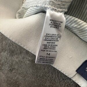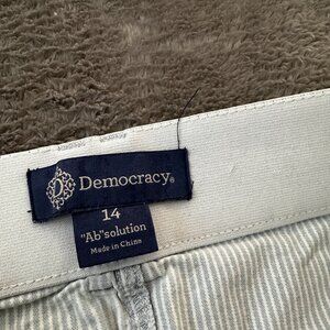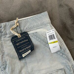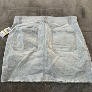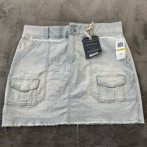NWT Democracy Ab Solution Denim Skirt Women's 14 Blue Striped Cargo Raw Hem