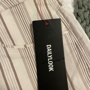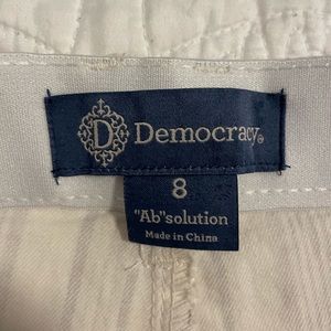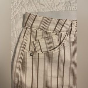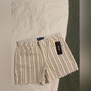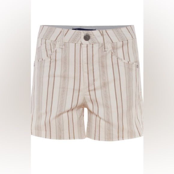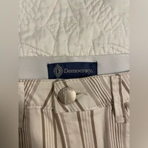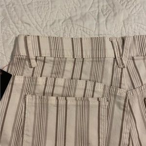 Democracy high rise short with raw hem. White and neutral tan stripes.. New with tags