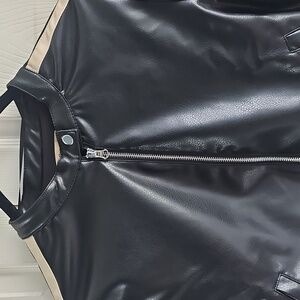 NWT Democracy Faux Leather Biker Jacket Zip Closure & Pockets Large Black/Cream