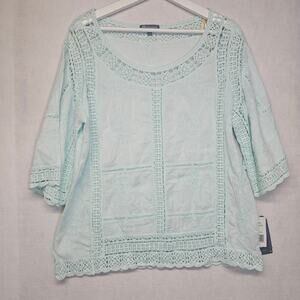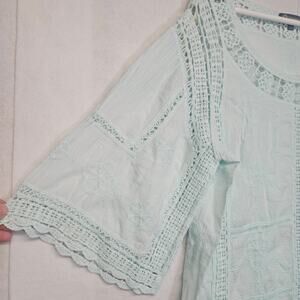 Democracy Seafoam Green Boho Crochet Bell Sleeve Blouse new with tags. Size small