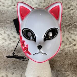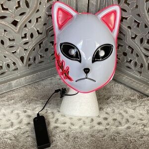 NWT! This Demon Slayer fox mask is white with pink and blue LED lights. The lights have several settings, including strobe and flash. This awesome lask is perfect for a Halloween party or as a cosplay. It is brand new with tags!