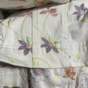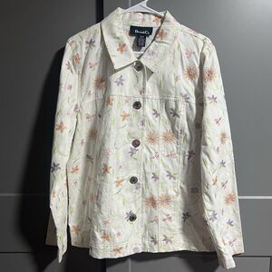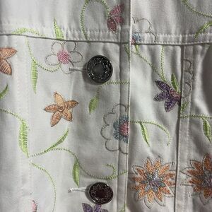 NWT Denim & Co Button Front Embroider Floral White Denim Jacket L Cottagecore