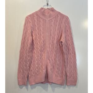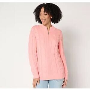 NWT Denim & Co. QVC Pink Full Zip Cable Knit Cardigan‎ Sweater Womens Large