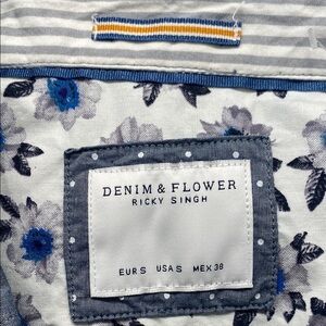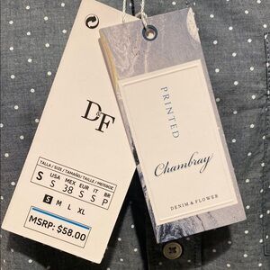 NWT Denim & Flower Blue and White Casual Button Down Chambray Shirt Men’s