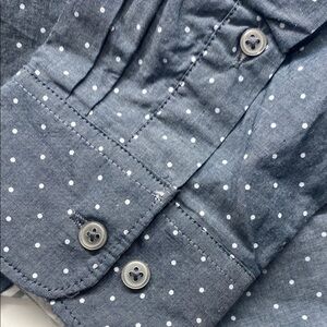 This casual button-down shirt from Denim & Flower showcases a stylish blue and white polka dot design, perfect for a laid-back yet refined look. Crafted from a lightweight cotton blend, it offers comfort and breathability for everyday wear. Its tailored fit adds a modern touch to your wardrobe.