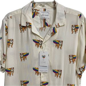 NWT Denim & Flower Button Up Bulldog Rainbow Print Shirt Sz M Soft Summer Beach