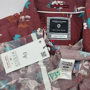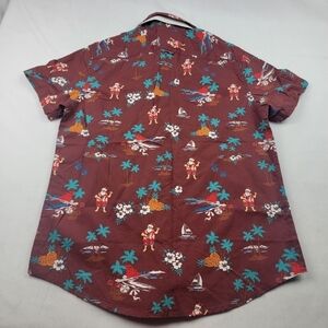 NWT Denim & Flower guitar Santa tropical Christmas holiday button down shirt