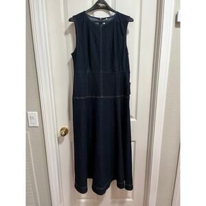 NWT Denim Midi Dress A-Line Dark Wash XL Long Modest Sleeveless Teacher Office