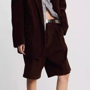 NWT Denimist Double Pleat Long Short Brown Corduroy Cafe 25/26/26/28