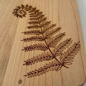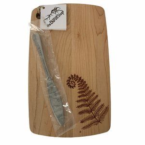 Trademark fern design on a JK Adams cutting/cheese board with cheese knife included.