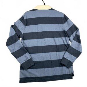 NWT Denver Hayes Mens Size L Navy Blue Striped Long Sleeve Polo Shirt Modern Fit