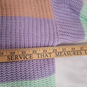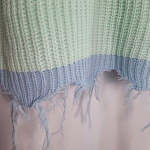 NWT Derek Heart Size L Pastel Cropped Tattered Raw Hem Striped Sweater