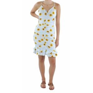 Look stunning in this Derek Heart women's slip dress that features a beautiful blue sunflower pattern. The knee-length dress has a V-neckline and is sleeveless with an accent strap and a tie closure. It's perfect for different occasions such as travel, weddings, parties, casual and workwear. This bodycon dress is made of lightweight and stretchy polyester-spandex material that's machine washable. The dress has an open back and is available in size small. It's a colorful and floral-themed dress that's perfect for the summer, fall, and spring seasons. The dress is not vintage, and it's made in China. Remember to wash in cold water.