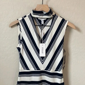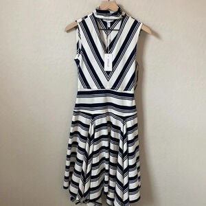 NWT Derek Lam 10 Crosby Striped Knee Length High Neck Midi Dress XS