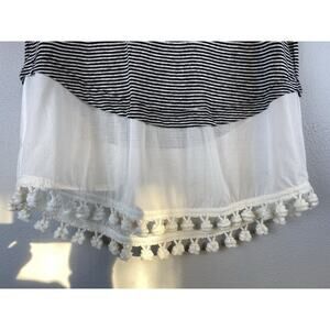 NWT Derek Lam 10 Crosby Sz S Scoop Tank W/Pom Pom Layered Striped Linen Top