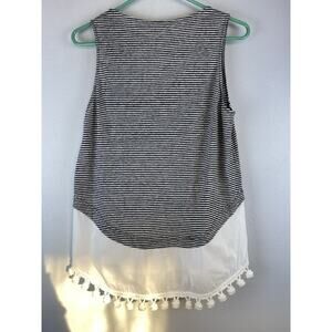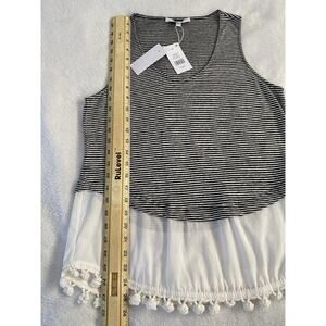 NWT Derek Lam 10 Crosby Sz S Scoop Tank W/Pom Pom Layered Striped Linen Top. Measurements in photos. MSRP $195