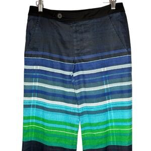 NWT Derek Lam 10 Crosby Womens Wide Leg Pants 6 Striped Flare 100% Linen Blue/Green City Pockets