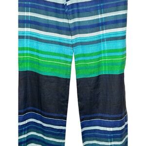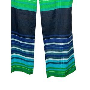 NWT Derek Lam 10 Crosby Wide Leg Pant 6 Striped 100% Linen Flare Blue/Green City