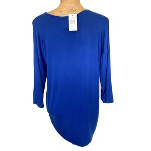 NWT Design History Rhinestone Tee Sapphire Blue Hi Low Slouchy Size Small