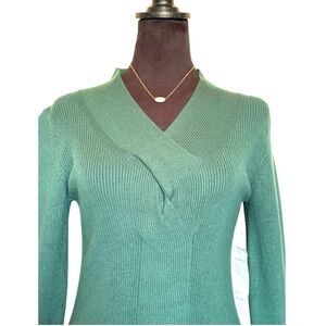 NWT Design History Woman’s Small Forest Green V-neck Ribbed Sweater