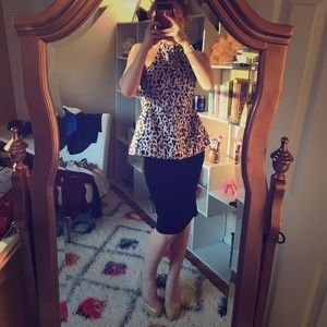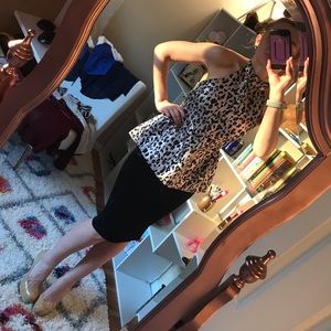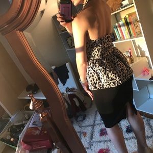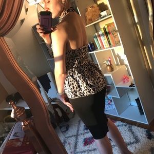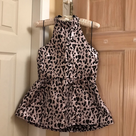Shiny and glam, leopard print. Silver with lava see tint, open back. NWT, size small. Skirt is not included.