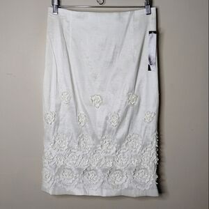 NWT Design Today’s Floral Appliqué Pencil Skirt Elastic-Back Pull-On White Sz L