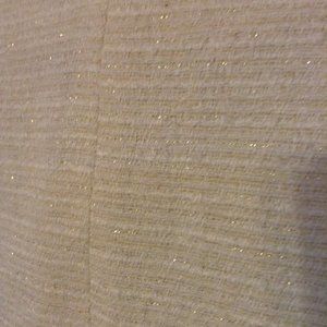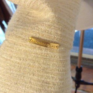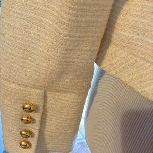 An awesome Michelle Belau jacket/blazer in cream with gold thread throughout - no buttons. Michelle is a Peruvian designer with retail stores in Latin America and Dubai. Super cute designs! Little puffed shoulders.