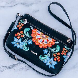 NWT Desigual Black Embroidered Shoulder Bag - Stunning!