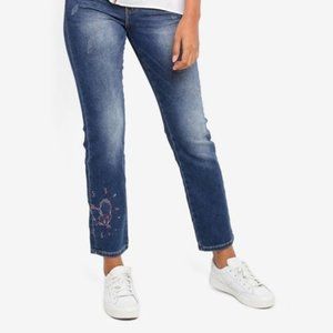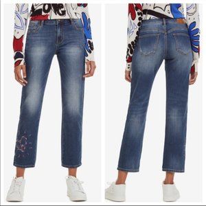 NWT Desigual Blugi Crop Embroidered Skinny Sanford Jeans 8