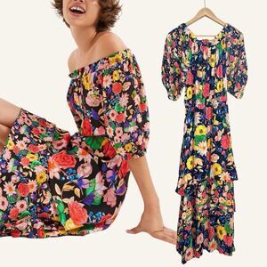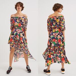 NWT Desigual Multicolor Off-Shoulder Tiered Floral Hi-Lo Dress Size L