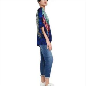 NWT Desigual Siracusa Oriental Inspo Batwing Blouse Multi-Colored Size Small