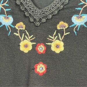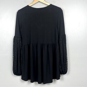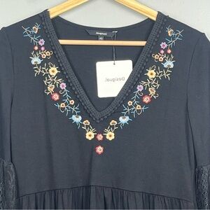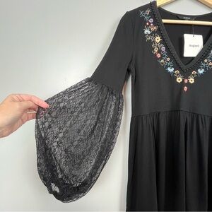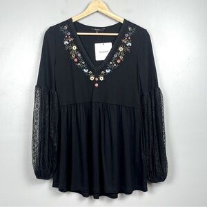 NWT Desigual black Vermont lace balloon sleeve embroidered blouse, XS. Babydoll style, elastic cuffs. Approximate measurements 16.5” pit to pit, 28” shoulder to hem, 24.5” sleeves.