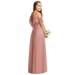 New With Tags Dessy Collection Cold Shoulder Chiffon Flower Girl Dress (Juniors 16 Big Girl).