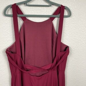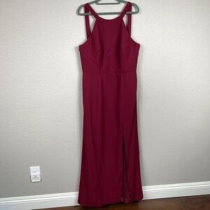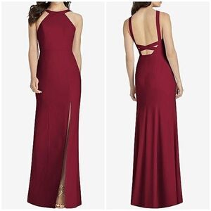 NWT Dessy Collection High Halter Neck Open Back Crepe Gown Dress Burgundy Sz 18