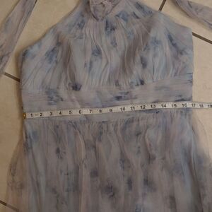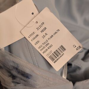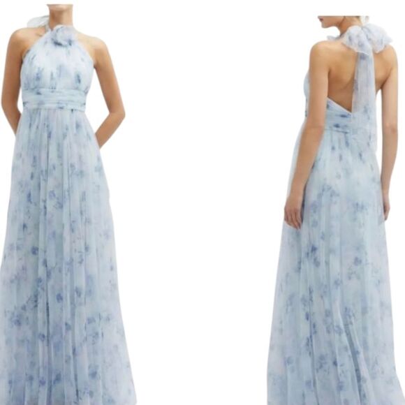 Dessy Collection Style 3131. New with tag Dessy Collection Tulle Floral Print Gown Maxi Dress Blue/lavender purple Mist Garden with halter top. This elegant maxi dress features a beautiful blue and lavender purple floral design, perfect for special occasions. Size 16 please see measurements pictures to be sure of fit. Purchased from Nordstrom retail: $298