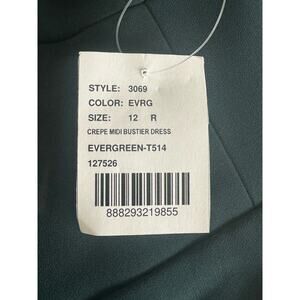 NWT Dessy Collection Vivian Diamond Bustier Crepe Midi Dress Evergreen Size 12