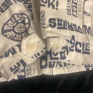 NWT Deus Ex Machina Men’s M Cream/Black Text patterned jacket from Deus Ex Machina. Cotton construction offers a full-length zip front closure, pointed collar and slip pockets at the waist. Topped with long sleeves with adjustable button cuffs. In 2006, Deus Ex Machina roared into Australia's cultural consciousness with a philosophy of using simple designs for quality products made to complement our lives. Extra Button