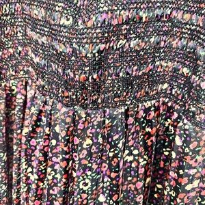 NWT Dex Tinsley Smocked BOHO Black Pink Gold Midi Dress Sheer Puff Sleeves, sz X