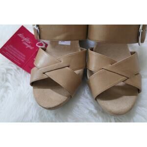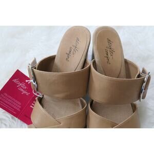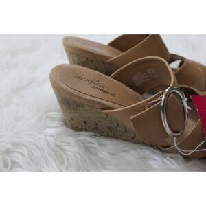 NWT Dexflex Comfort Sandals Women's Size 10 Tan Slip On Cross Strap Wedge Heel