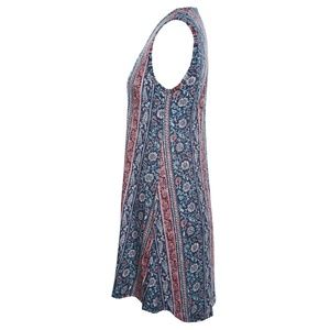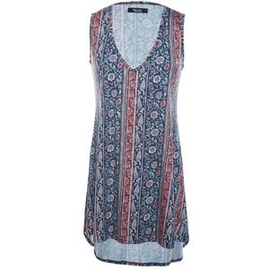 The Diamond Sleeveless V Neck Mini Dress by Michael Lauren is the perfect summer number! Keep it cool with the sleeveless cut and signature ML fabric. Featured in a transitional summer to fall boho print.